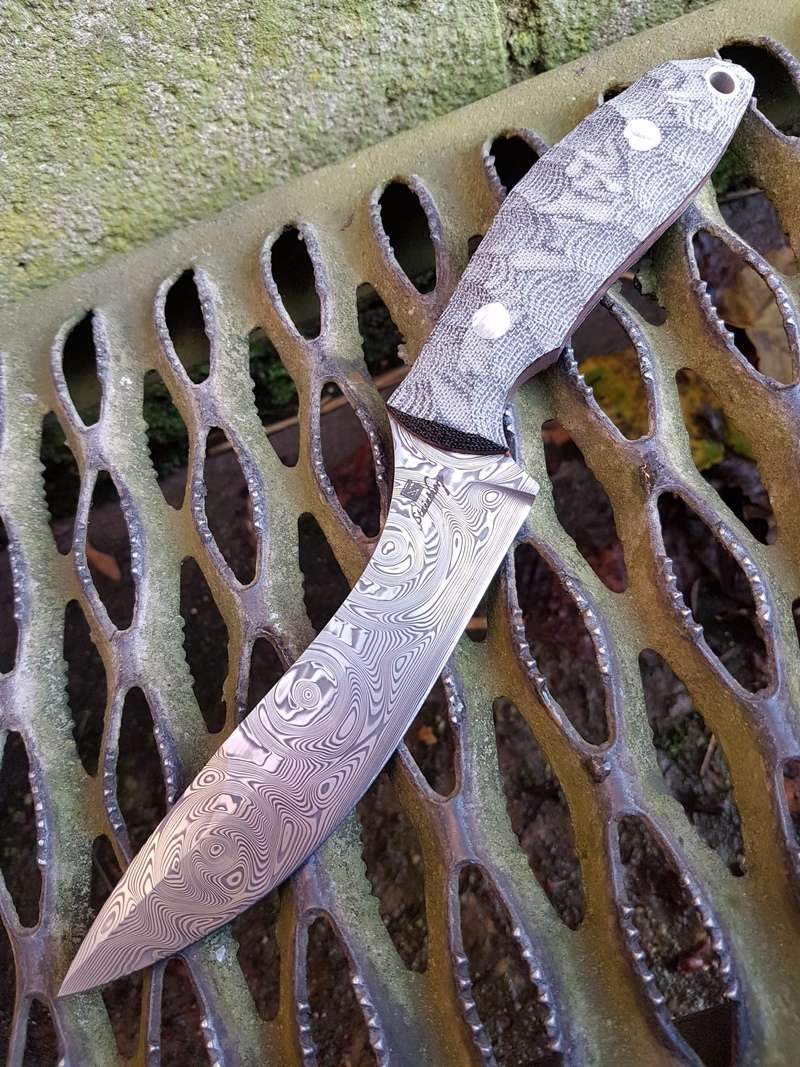Full sized Evo in grosserosen Damasteel and black canvas micarta